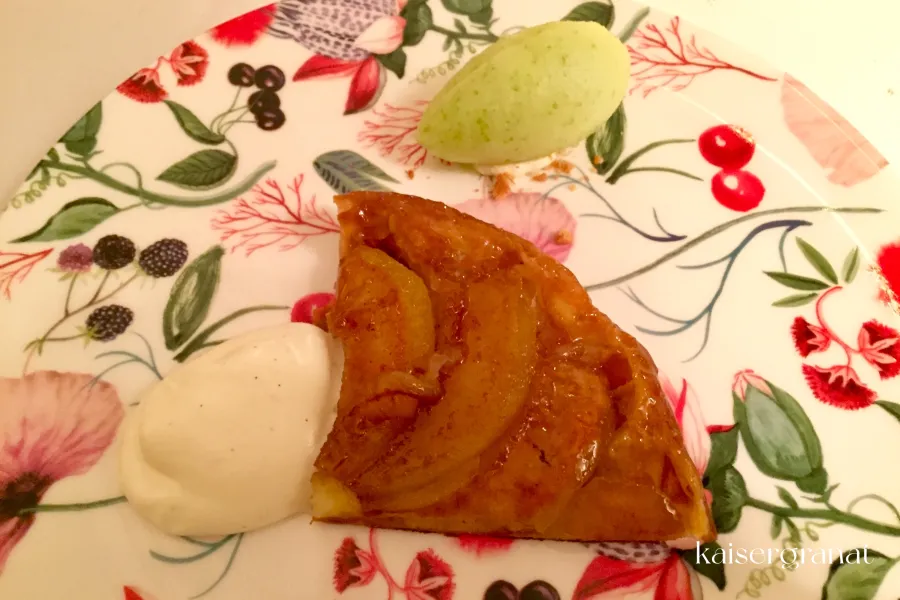 Abschluss: Altländer Apfeltarte mit Crème Chantilly und Apfelsorbet
