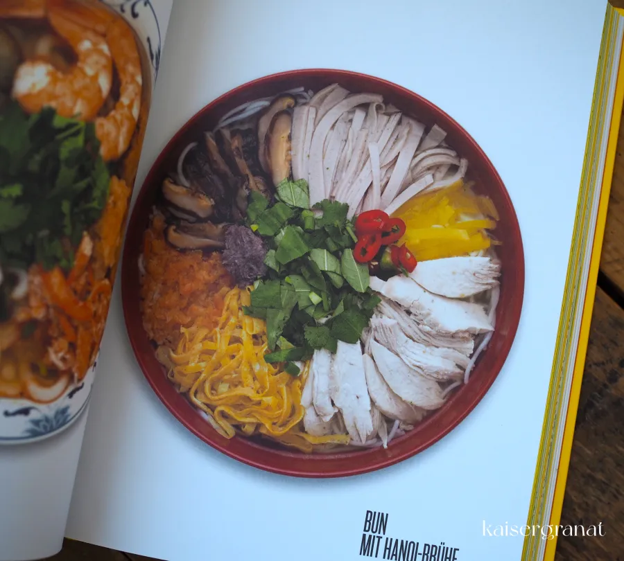 Den Beginn des Buches macht eine hervorragende Warenkunde mit der Vorstellung der wichtigsten Nudelsorten. Inklusive Bild, Zutaten und Herstellung. Danach folgen Rezepte für Soba-Nudeln, Ramen, Udon und Pho. Weiter geht’s mit Nudeln mit Sauce, gebratenen Nudeln und einem Kapitel über Brühen und weitere Grundrezepte.