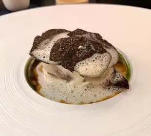 Auffällig ist der Purismus von Witzigmanns Gerichten: Nur einige wenige Komponenten, auf dem Teller ohne Deko arrangiert. Kann man mal sehen! Denn nach einer Zeit mit vielen Tupfern und Mikro-Elementen auf dem Teller kehren viele Köche gerade genau dorthin zurück.
