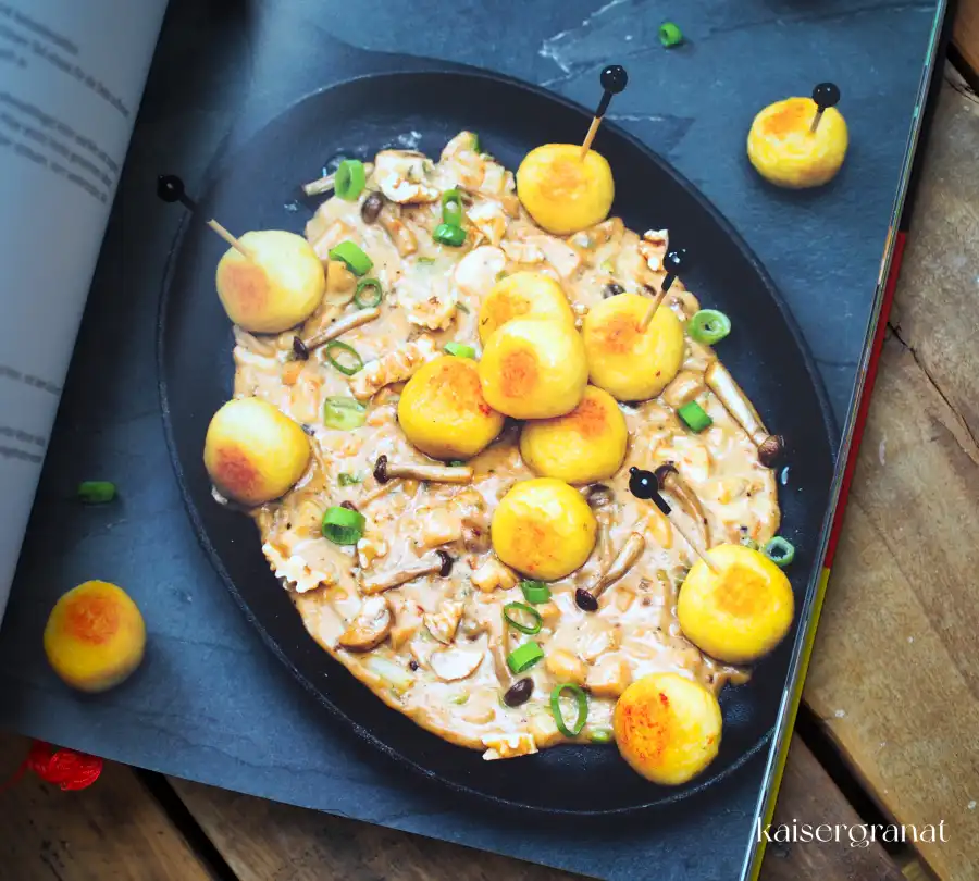 Abseits dieser Kritik muss man dem Autorenpaar aber auch ein Kompliment aussprechen. Denn mit viel Kreativität und Hingabe haben sie den Rezepten ihren eigenen Dreh verliehen und können sich sicher sein, dass ihre Rezepte sehr vielen Menschen gut schmecken werden. Ein paar Beispiele: Mini-Knödel mit Pilzrahmgorgonzola, Cordon Bleu-Rouladen mit Kartoffelsalat, Strammer Max-Waffeln, Krustenbraten auf Rote Bete-Radi-Carpaccio, Weißwurst-Lollis, Mini-Maultaschen mit Zwiebelsauce, Buletten im Speckmantel.