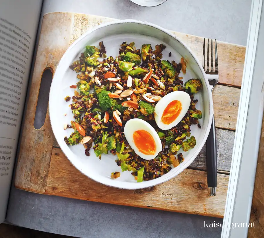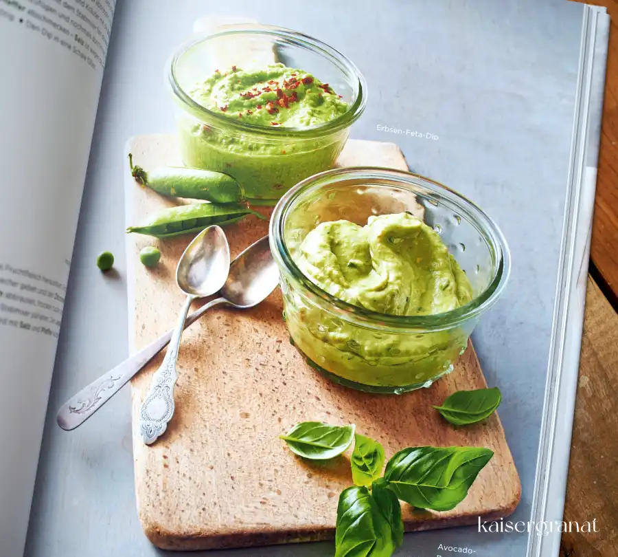 - Müslis, Brot, Aufstriche und Dips, u.a. mit: Müsli mit Karotten und Kokosflocken, Birchermüsli, Porridge mit Trockenfrüchten, Erbsen-Feta-Dip, Karotten-Walnuss-Brot