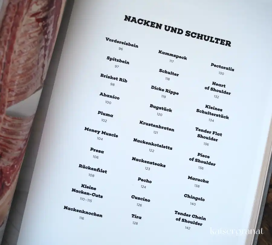 Es ist eine besonders ehrenwerte Aufgabe, der sich Metzger Christoph Grabowski angenommen hat: Mit seinem Fachbuch zeigt er, was außer Schnitzel und Nackensteak sonst noch so drinsteckt im Schwein. Äußerst fundiert und inhaltlich vielseitig geht es dabei nicht nur um Cuts sondern zunächst um weitere lesenswerte Aspekte: Haltung und Aufzucht, Alte Rassen, Rassenkunde, Schlachtung und Klassifizierung. Im Hauptkapitel „Das Zerlegen“ zeigt Grabowski dann Teil für Teil anhand des ganzen Tieres, welche Cuts sich noch aus Kopf, Schulter und Nacken, Rücken und Bauch, Keule und Innereien schneiden lässt. Den Abschluss bilden Kapitel zur Reifung, Vermarktung und zur (kommunikativen) Arbeit des Metzgers. Zusammenfassend können wir uns nur dem Fazit von Lebensmittelphysiker Thomas Vilgis aus seinem Vorwort anschließen: „Das (.) Buch ist eine hervorragende Anleitung zur kulinarischen Weiterbildung und Wertschätzung der vergessenen Vielfalt des Schweins.“